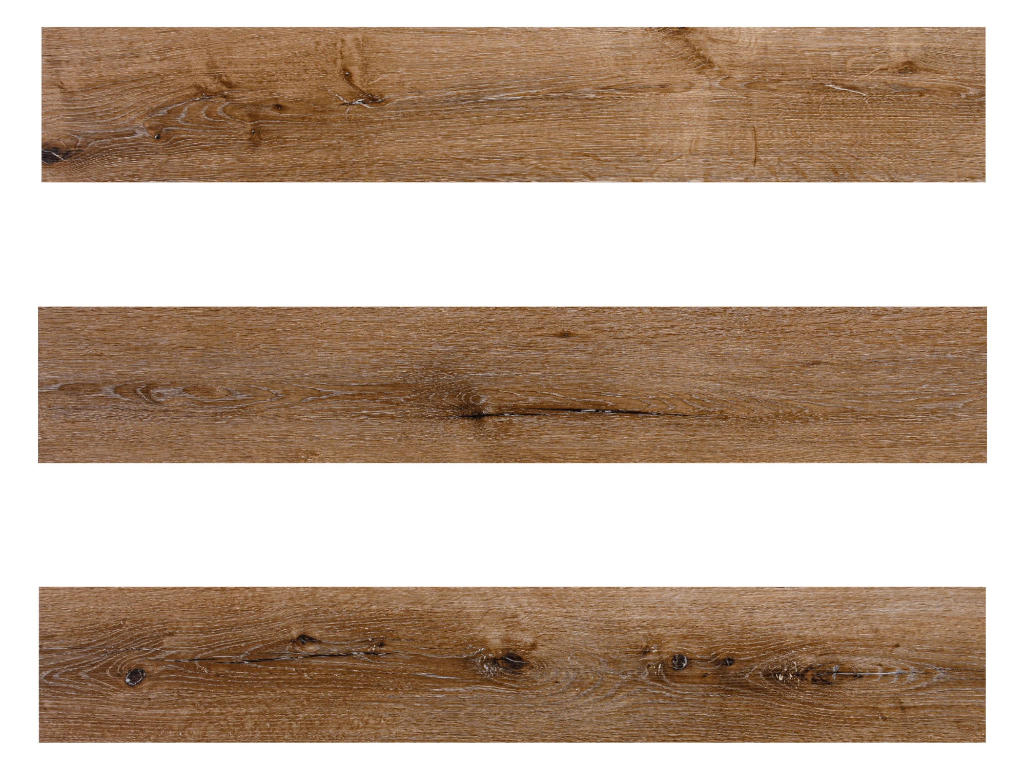 Naturalny dąb w średnim brązie z bielonymi porami; wyraźnie szczotkowany rysunek i sęki — wyrazisty, lekko rustykalny dekor.
